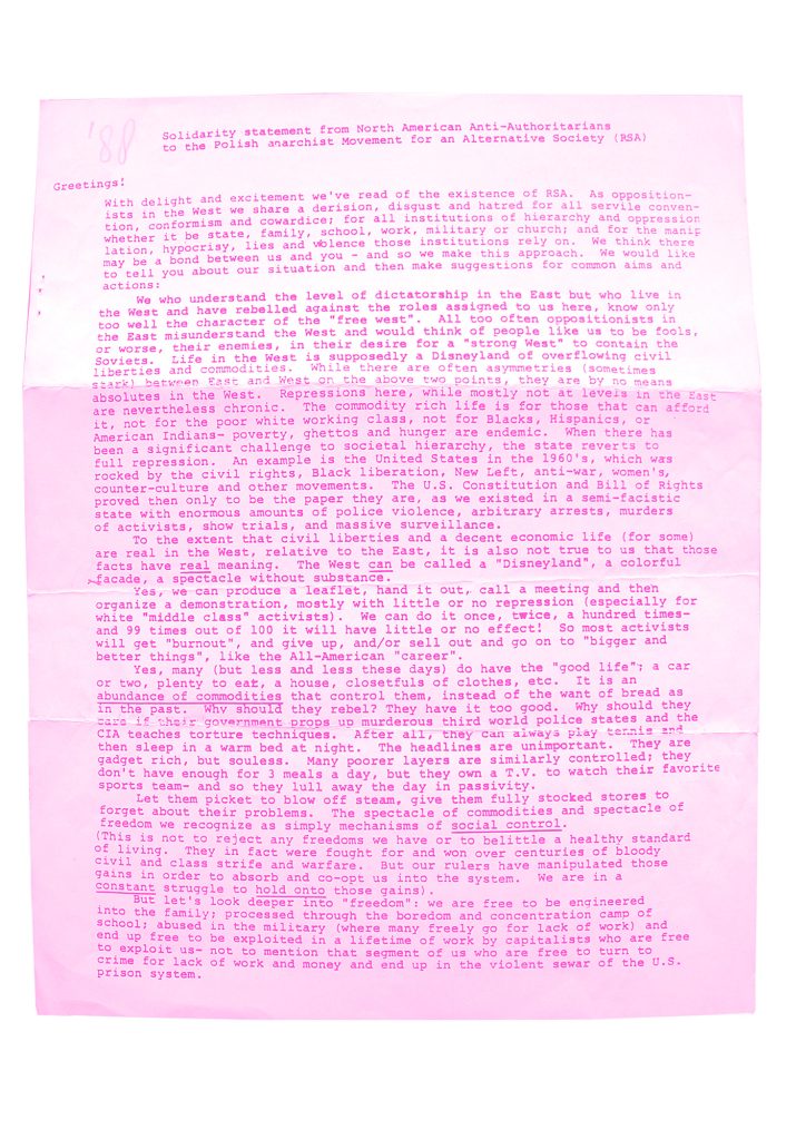 This work shares the story of an anarchist network in the late ’80s and early ’90s through the letter archive of the late Dutch anarchist Karl Max Kreuger that is now kept in the International Institute for Social History in Amsterdam.